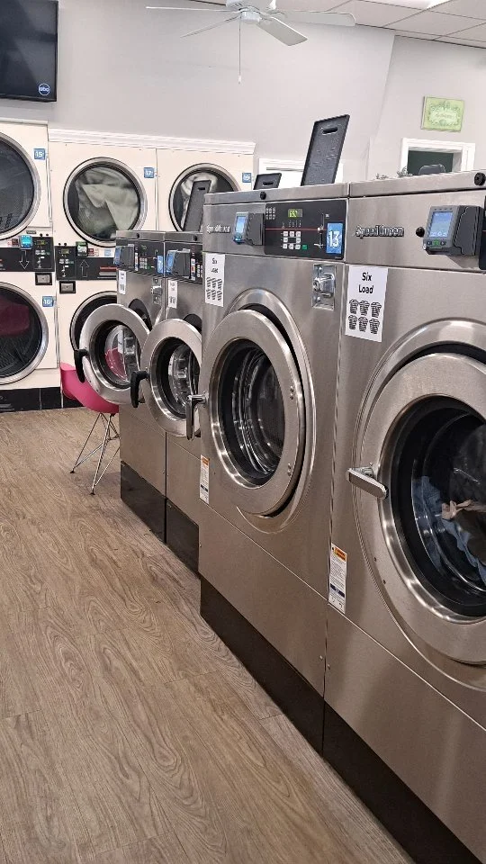 Beautiful day for spring cleaning. These large capacity washers are perfect for washing large comforters (or anything else) before you put them away. #laundromat #washdryfold #springcleaning